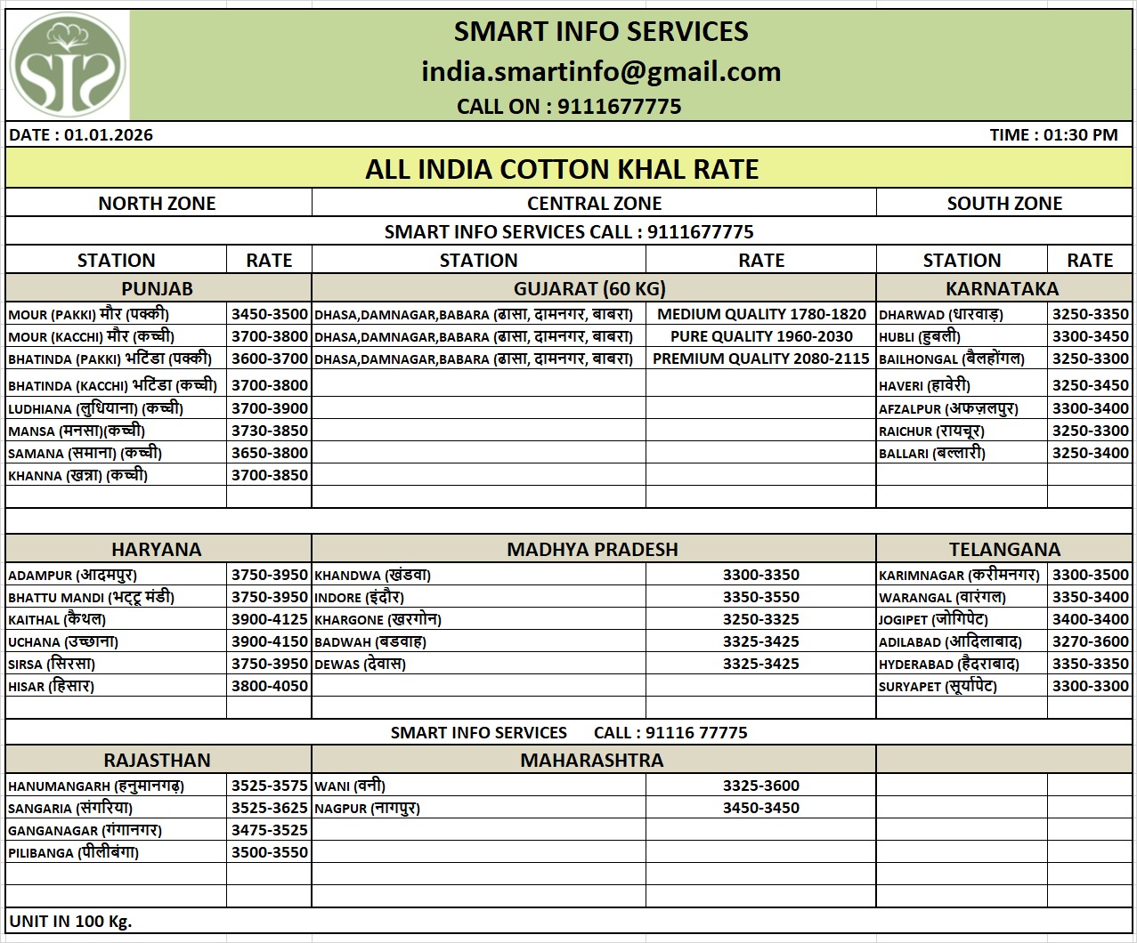 2023-24 सीज़न के लिए, सरकार ने मध्यम रेशे वाले कपास के लिए 6,620 रुपये प्रति क्विंटल और लंबे रेशे वाले कपास के लिए 7,020 रुपये प्रति क्विंटल एमएसपी निर्धारित किया है।