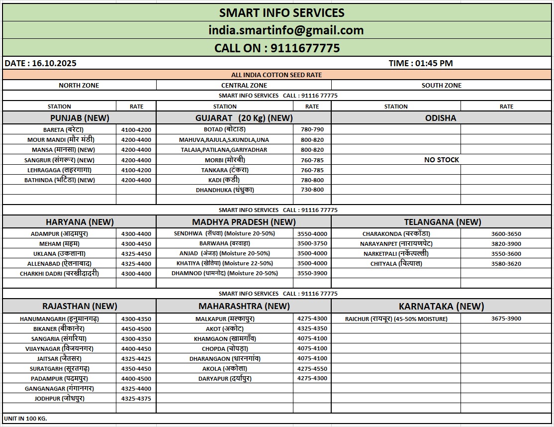 માલવા-નિમાર ક્ષેત્રમાં હાલમાં કપાસની કાપણી ચાલી રહી છે, અને ખેડૂતો કહે છે કે અચાનક પડેલા વરસાદથી નવા કાપેલા પાકના રંગ અને ગુણવત્તા પર અસર પડી છે. ખરગોનના કપાસના ખેડૂત અને જિનિંગ મિલ માલિક કૈલાશ અગ્રવાલે જણાવ્યું હતું કે, "કપાસની પહેલી લણણી ચાલી રહી છે, અને વરસાદને કારણે પાકનો રંગ ખોવાઈ ગયો છે. આ સિઝનમાં સૂકવવા માટે જગ્યા ન હોવાથી, લણણી પછી ગોદામોમાં સંગ્રહિત કપાસ પણ બગડી જવાનો ભય છે."