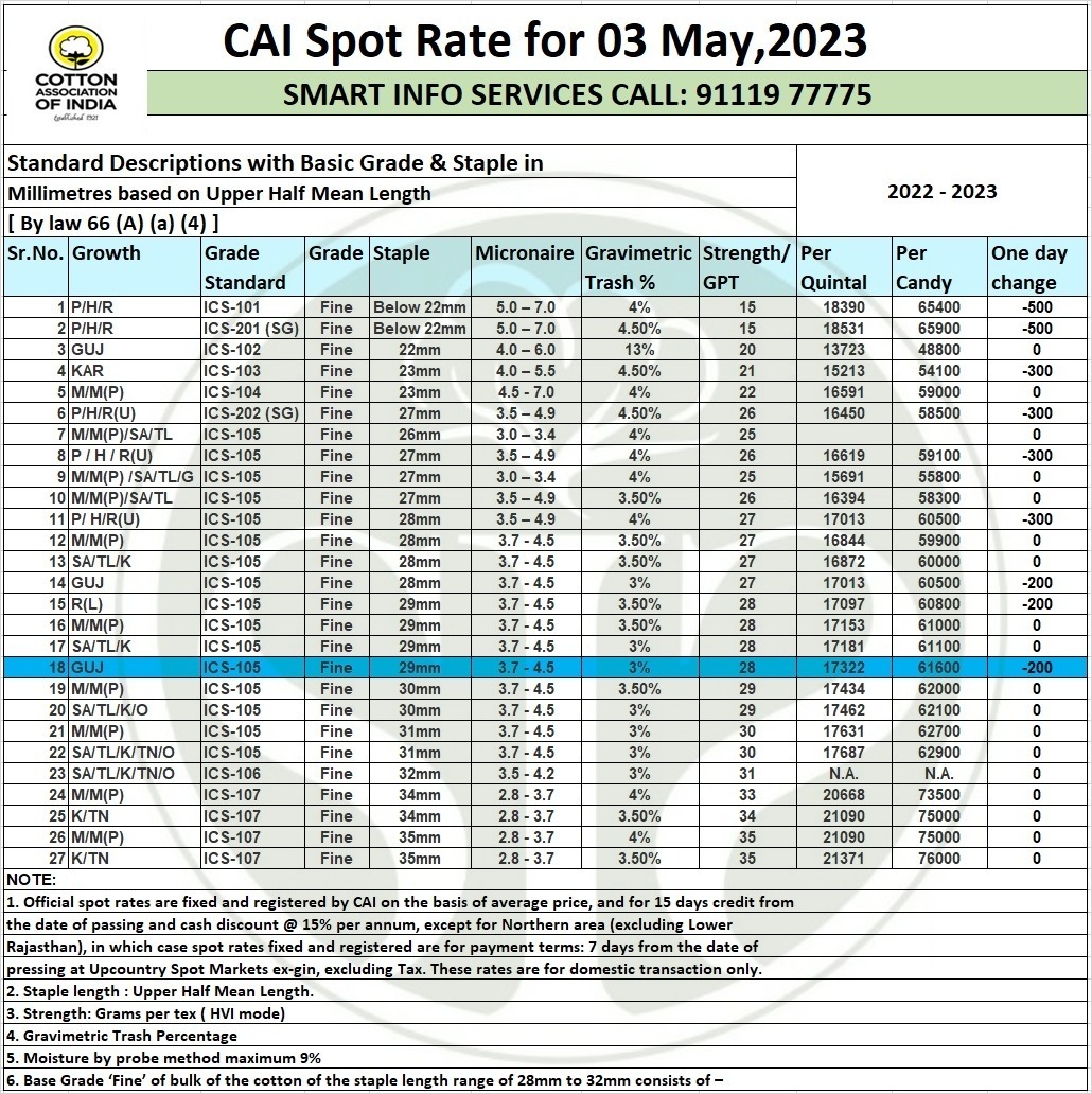* कपास खरीद केंद्र पर प्राप्त कपास यदि नियमों के अनुरूप नहीं होगा तो उसे वापस कर दिया जाएगा। ऑनलाइन प्रक्रिया शुरू होने के बाद ही पता चलेगा कि यह कपास मानकों के अनुरूप है या नहीं।