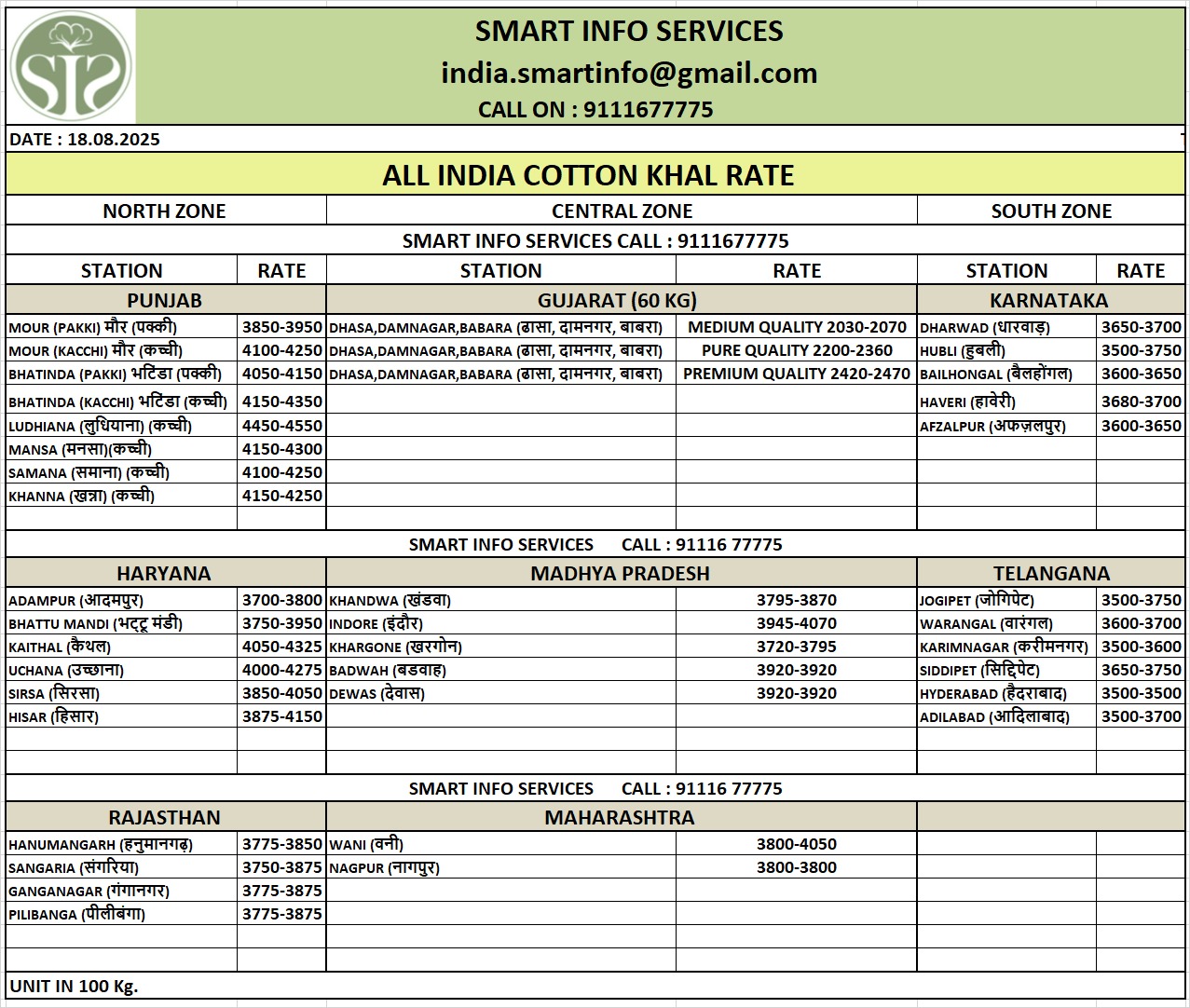 इंदौर: भारतीय कपास संघ (सीएआई) द्वारा 1 अक्टूबर, 2025 से शुरू होने वाले नए सीज़न के लिए कपास की पेराई संख्या के पहले अनुमान के अनुसार, मध्य प्रदेश में 2025-26 में कपास उत्पादन 19 लाख गांठ रहने का अनुमान है, जो पिछले सीज़न के समान ही है। हालाँकि, 2025-26 में भारत का कपास उत्पादन पिछले वर्ष की तुलना में 2.4 प्रतिशत कम रहने का अनुमान है। एक गांठ 170 किलोग्राम के बराबर होती है।