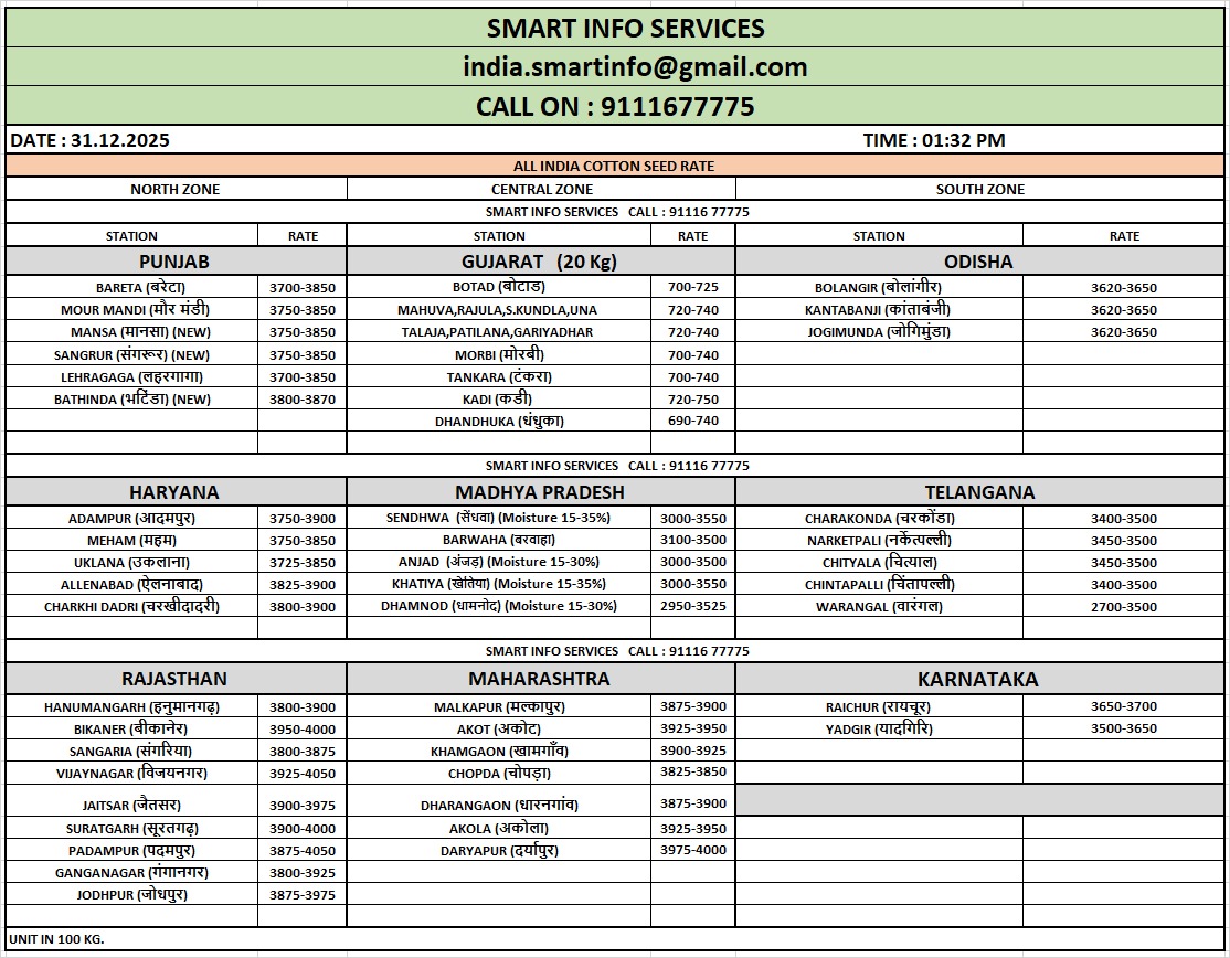 कपास उगाने वाले प्रमुख राज्यों में महाराष्ट्र, गुजरात, तेलंगाना और हरियाणा के किसानों की नजर अब आगामी मौसम की चाल पर टिकी है।