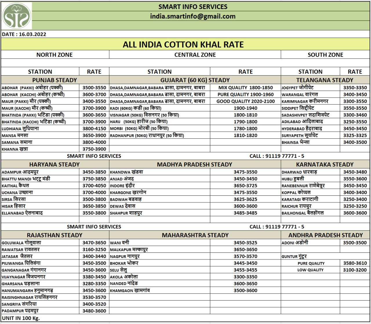 * कुल अनाज: 10,746 (केवल 1 हेक्टेयर की वृद्धि) * कुल दालें: 18,580 (18,013 हेक्टेयर की बढ़ोतरी) * कुल तेल बीज: 13,294 (12,905 हेक्टेयर की बढ़ोतरी) * कपास: 85,089 (45,048 हेक्टेयर की बढ़ोतरी)