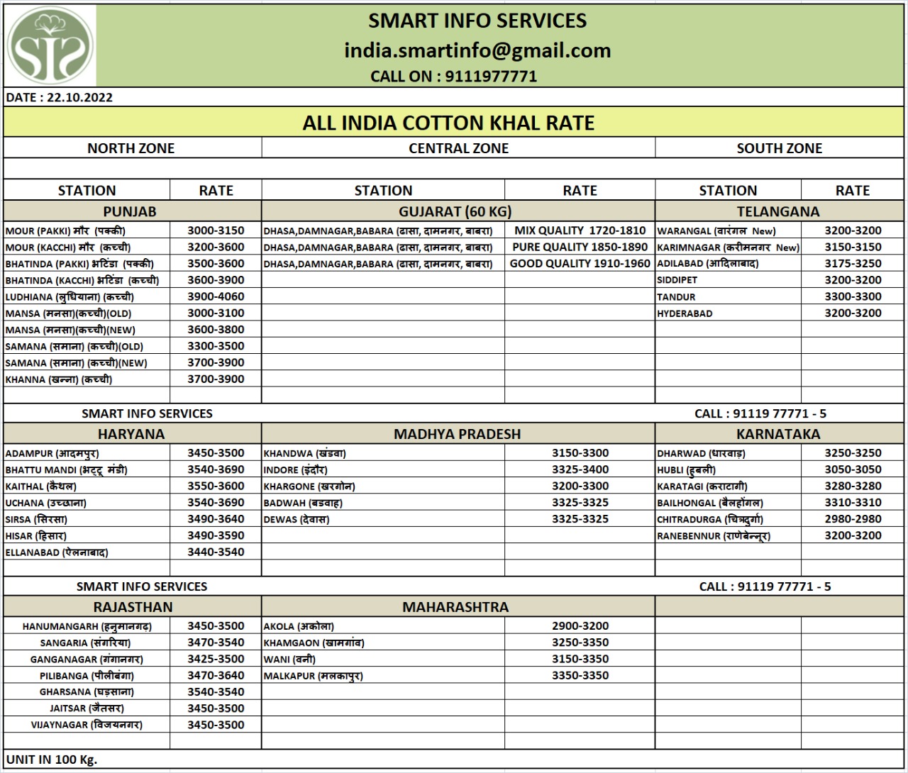 कॉटन कॉरपोरेशन ऑफ इंडिया (CCI) ने पूरे सप्ताह कॉटन की गांठों के लिए ऑनलाइन बोली लगाई, जिसका दैनिक बिक्री सारांश इस प्रकार है: