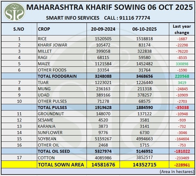 *MAHARASHTRA Kharif-2025 Season Sowing Report As On 06 OCT 2025*