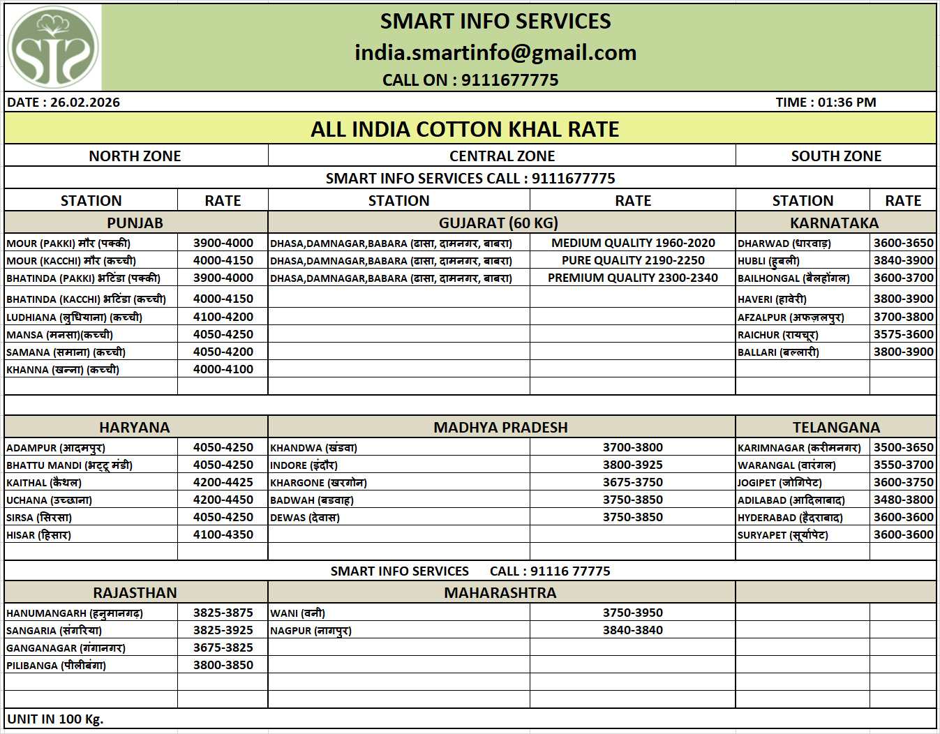 Cotton Seed Rates