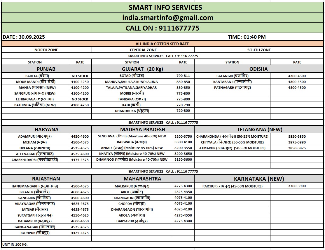 सोमवार को, राज्य मंत्री ने इस संबंध में केंद्रीय मंत्री को एक पत्र लिखा। उन्होंने बताया कि चालू सीजन में लगभग 43.29 लाख एकड़ में कपास की खेती की गई है और राज्य में 24.7 लाख मीट्रिक टन कपास का उत्पादन होने का अनुमान है।
