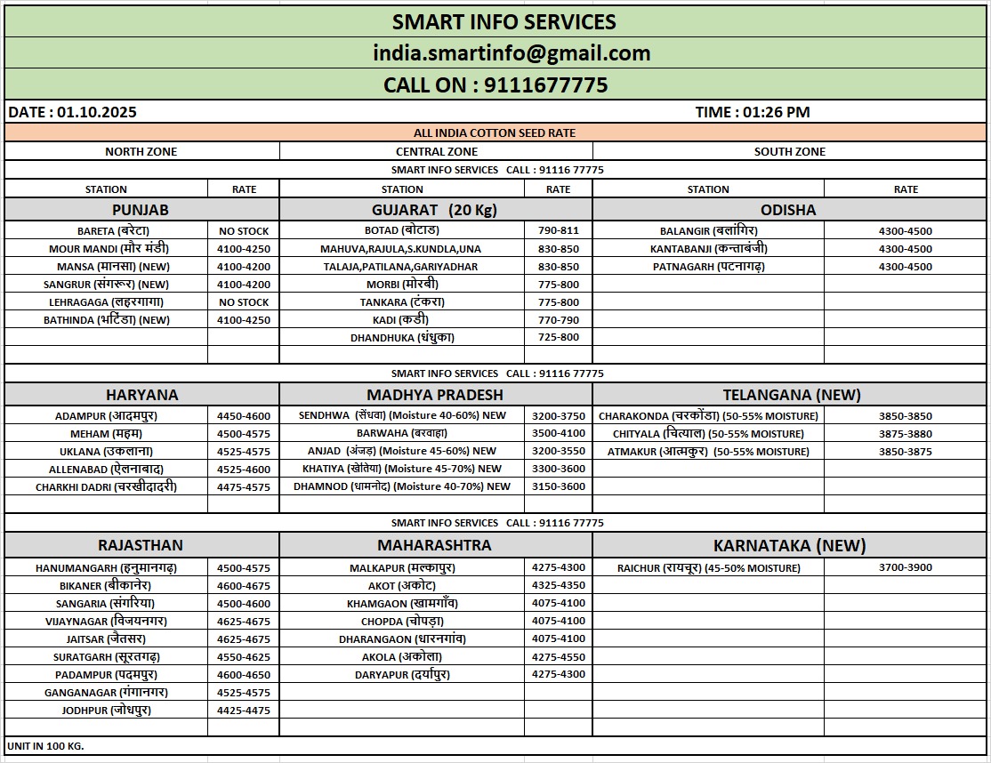 कपास उत्पादकों के लिए भी स्थिति उतनी ही गंभीर है। सितंबर की शुरुआत में हुई भारी बारिश से पहले ही बुरी तरह प्रभावित हुई कपास की फसल को फिर से भारी नुकसान हुआ है। रिपोर्ट के अनुसार, हाल ही में हुई इस बारिश में 1,85,705 एकड़ कपास के खेत प्रभावित हुए हैं, जिनमें 26 से 100 प्रतिशत तक नुकसान हुआ है।